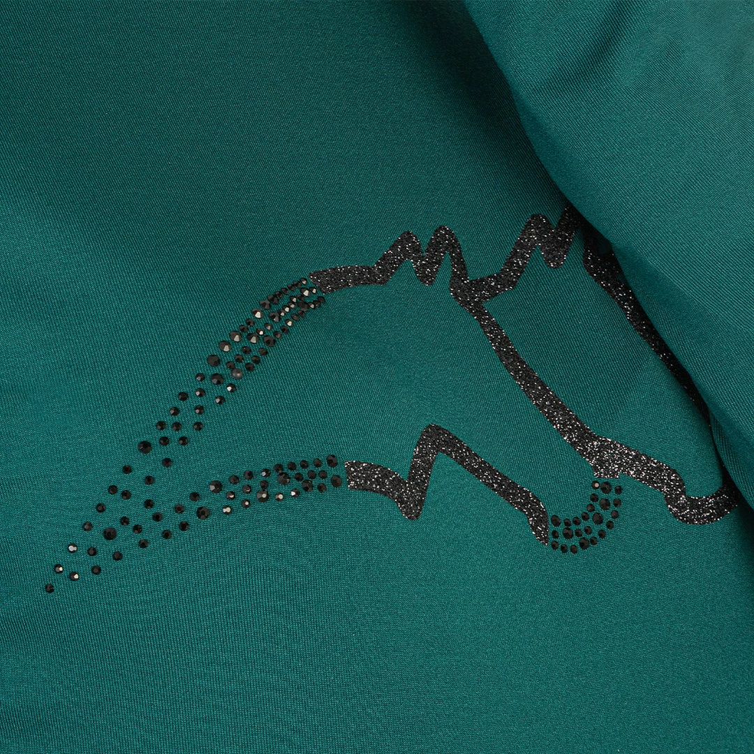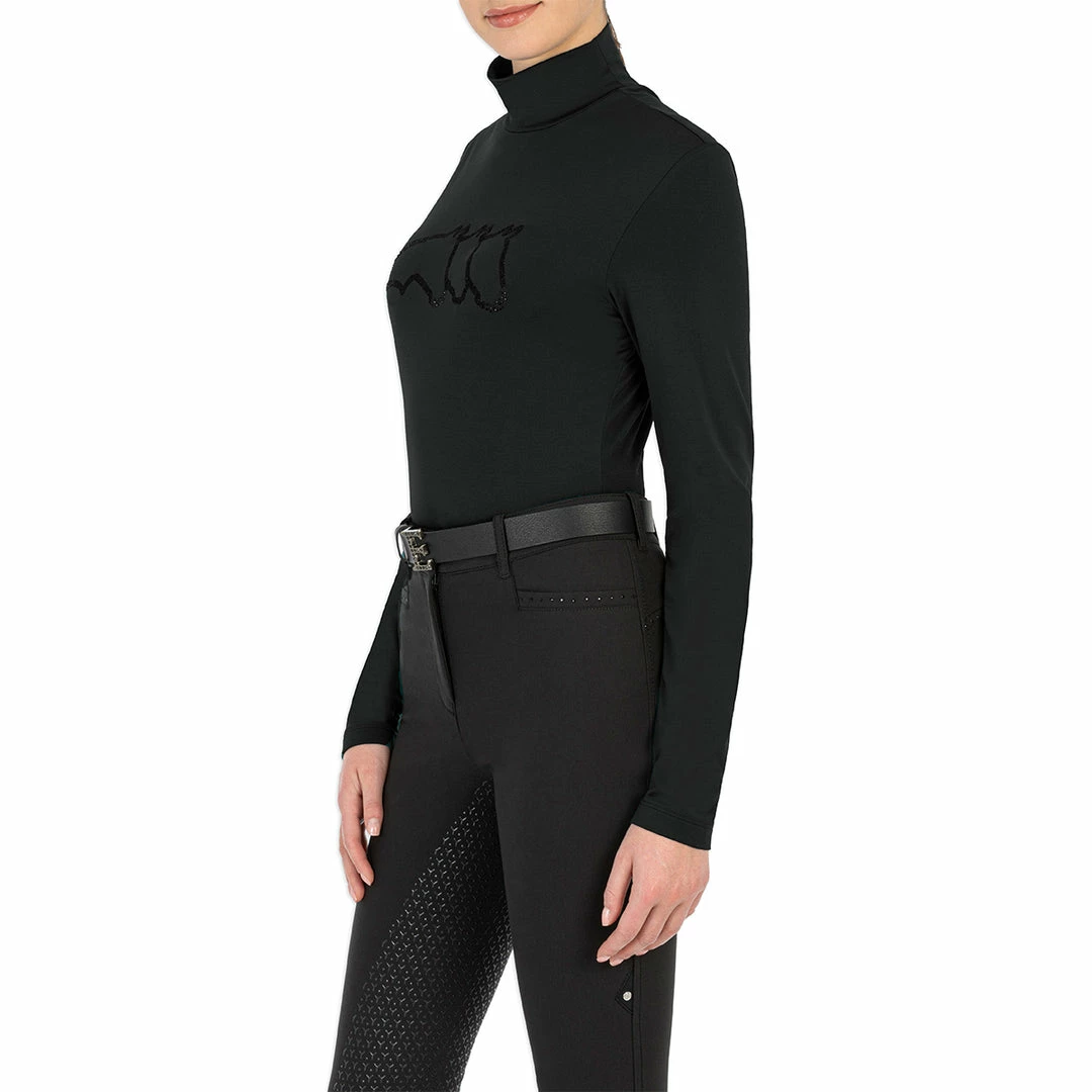 With a mock turtle neck design, the GilaveG is ideal for cool winter days schooling horses around the farm. A great baselayer for underneath your favorite vest, or let it stand on its own and showcase the glitter logo front!