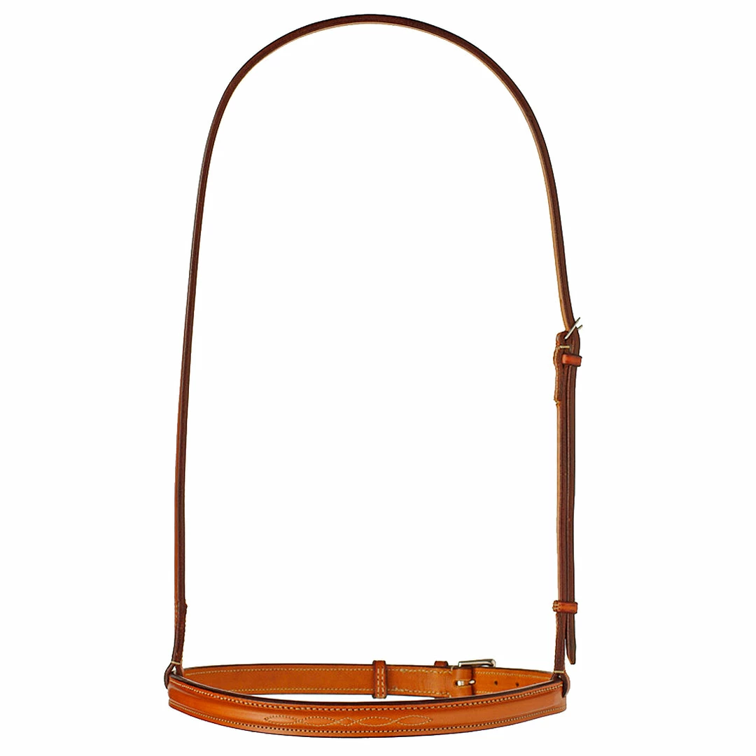 Chain Nosebands: The chain on the backside of this training noseband is a high-grade, stainless steel link chain that is hand-stitched into place for extra strength and durability. Fine hand- and machine-stitching, handcrafted square-corner keepers, and stainless steel hardware complement this Edgewood Noseband. Features comfortable padding and fancy stitching across the nose. Made with a ‘soft’ edge brass tack.