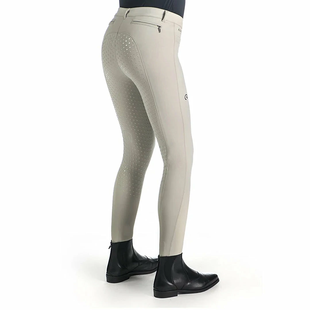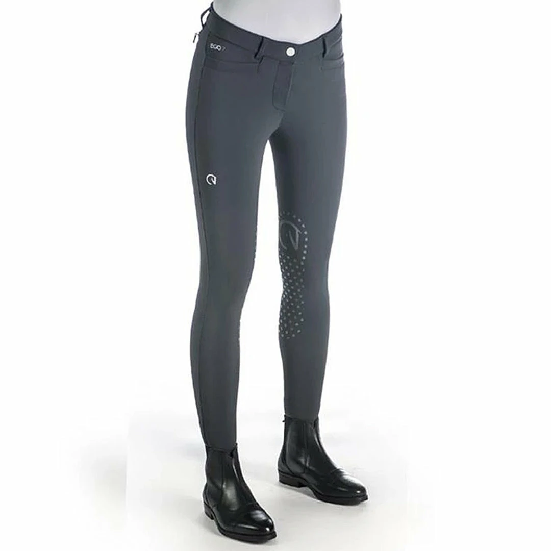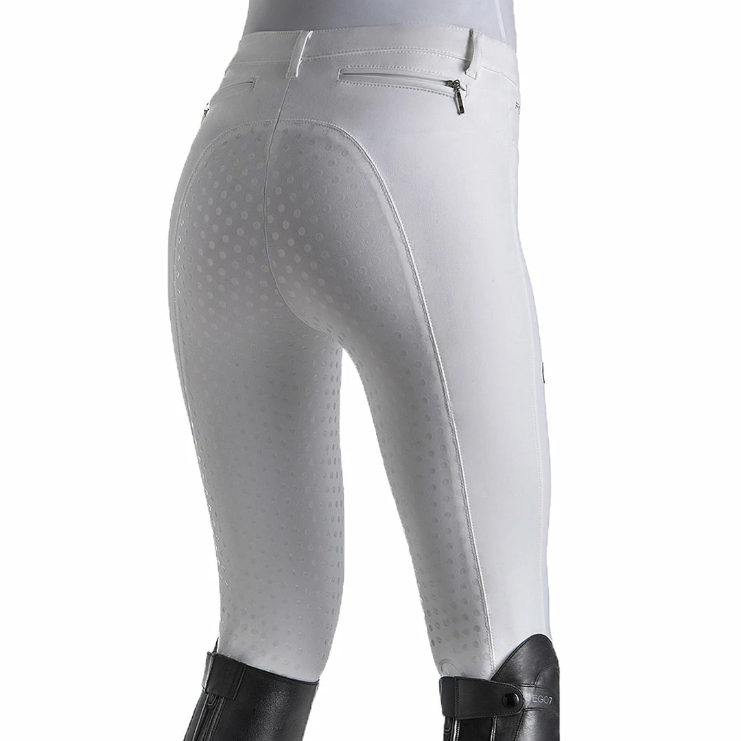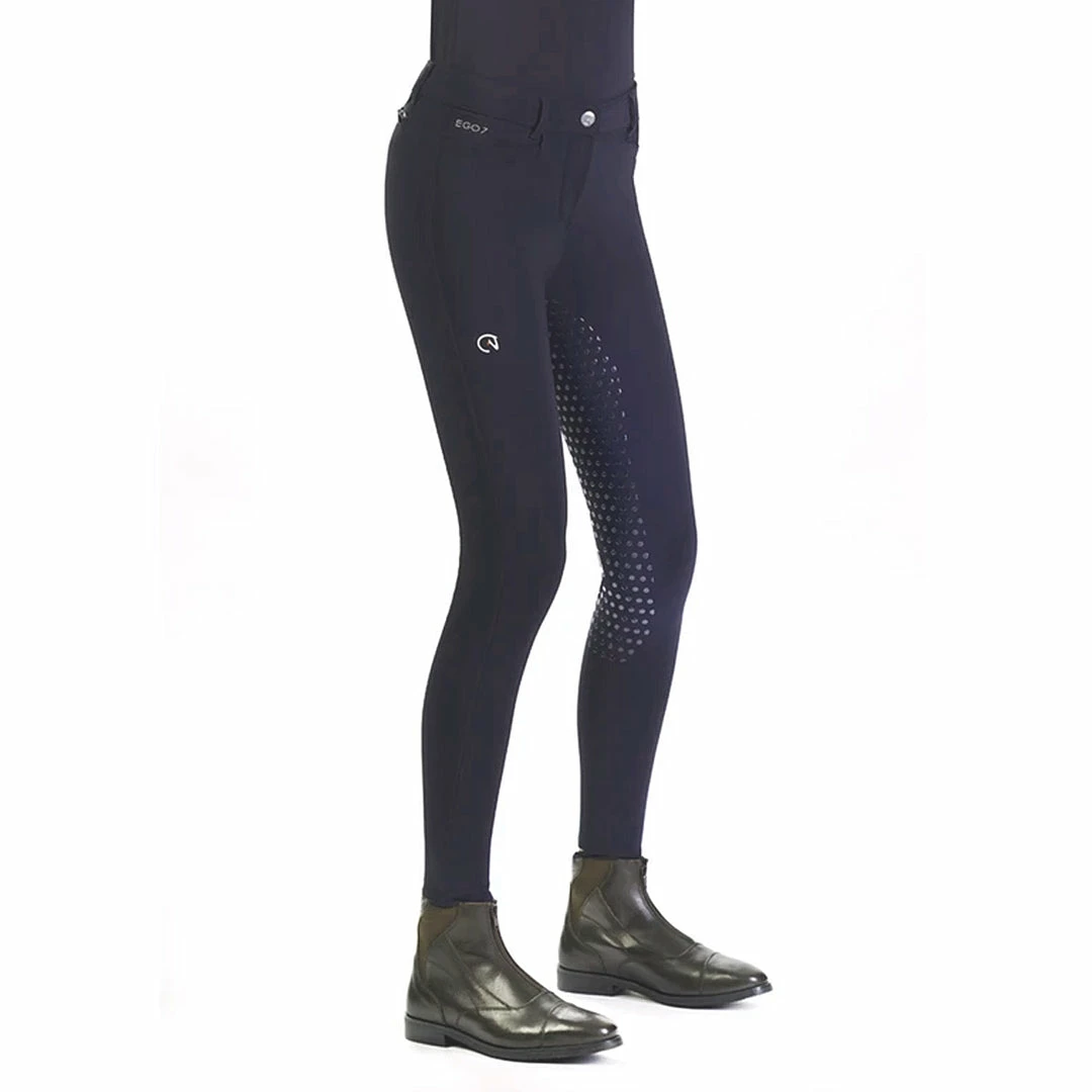Ego 7 Dressage FG breeches are high-waist with flattering front pockets and zip detail on the back; superior performance and style are guaranteed thanks to the signature cut developed by Italian designers and the use of the best technical materials for sports. The revolutionary fabric, 100% jersey made in Italy, ensures a perfect fit with four-way stretch for unrestricted movement, support, and shape retention. Comfortable, breathable, and with better contact with the horse while riding. A modified high waist sits fashionably high in front and rises in back for complete coverage. EGO7 breeches feature a new patented COBRAX button and the innovative full seat grip for exceptional sticking power to allow stability in the saddle and on the interior of the waistband to prevent shirts from untucking. These are perfect for both competition or daily training, particularly suitable for dressage. Machine wash.