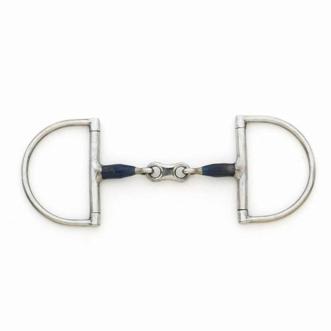 We love this Centaur® Blue Steel French Link Hunter Dee Bit because it is a mild bit with a bit more control. The french link adds pressure to the tongue and stops the nutcracker action of regular snaffle bits, giving more control. This is a classic bit popular in the hunter ring.