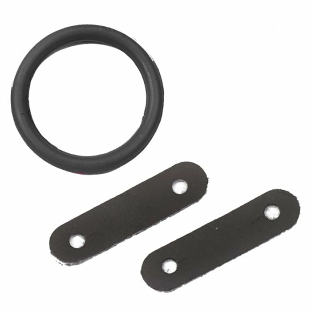 - Ready to use kit includes rings and leather loop straps.