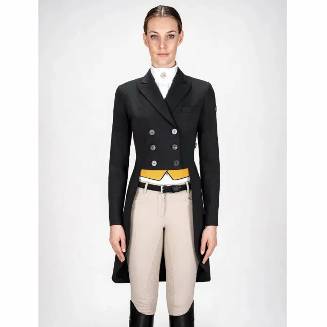 We love the Equiline Women’s MacKenzie Hunter Shadbelly because it is handmade in Italy and elegantly and classically styled with the hunter ring in mind. The classic design guarantees excellent freedom of movement and a style that is best suited for the Hunter discipline as the tails are particularly light and short. This coat is machine washable and customization on collar and piping is available as well.