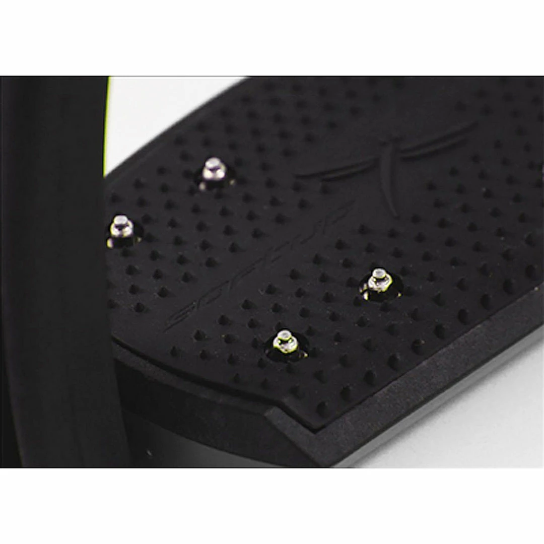 The latest upgrade to the Soft’Up Pro Irons, the Soft’Up Pro Plus Irions have an enlarged non-slip tread with rounded corners for improved rider comfort. The tread is 1.6cm wider (27% wider- now nearly 5″ wide) to allow greater contact with the rider’s foot in combination with increased shock absorption capabilities. It also has longer studs on the tread for improved grip.