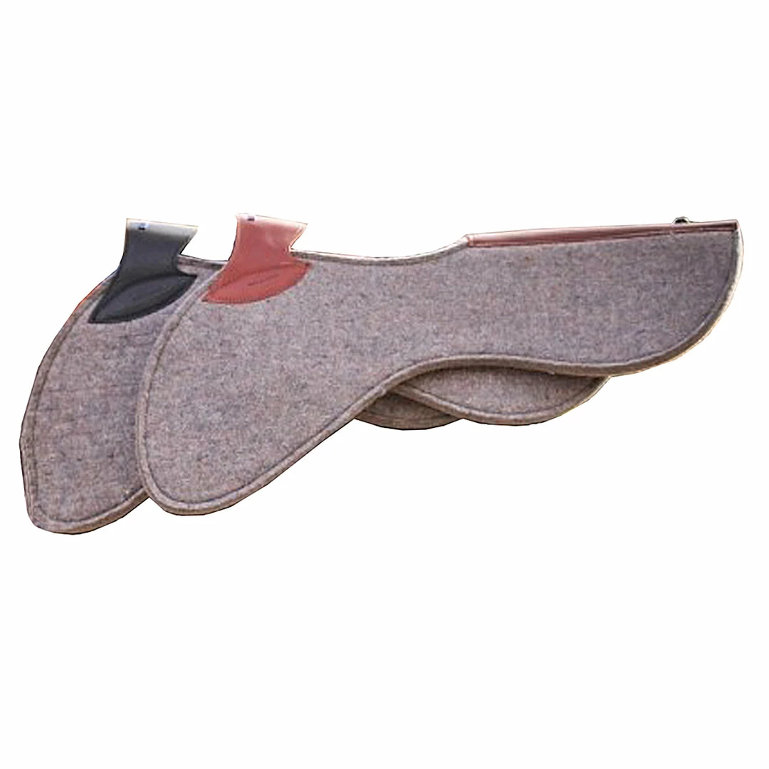 Theย Jump’in Feltย andย leather padย is made of a high quality thick felt that absorbsย shockย and shockย waves. Theย wideย opening relieves pressure on the withersย and gives a greatย freedomย ofย movementย to the horse. Theย backlineย cut avoids pressure on the spine as well.