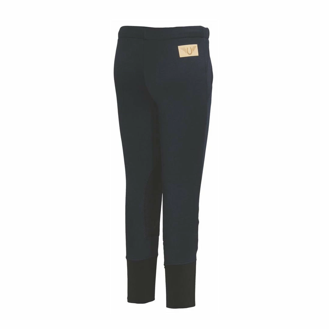 The TuffRider Children’s Unifleece Pull-On Stretch Fleece Knee Patch Winter Breeches are designed with your child’s comfort in mind with stretch unifleece that’s crisp and clean on the outside and soft brushed fleece on the inside for warmth and comfort. This Unifleece breech has an easy pull-on waistband with a drawstring to tighten. Created with modern safety features, these breeches include our UltraGripp knee patches and the leg forming contoured sock bottoms, for a more secure fit. Ideal for riding and working in the barn these winter breeches will be a go-to on chilly days.
