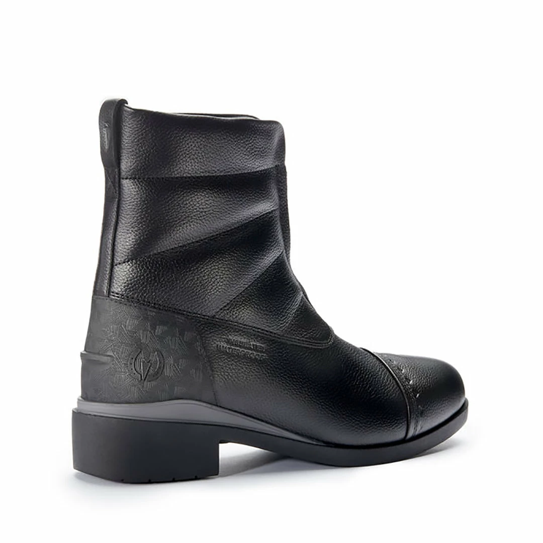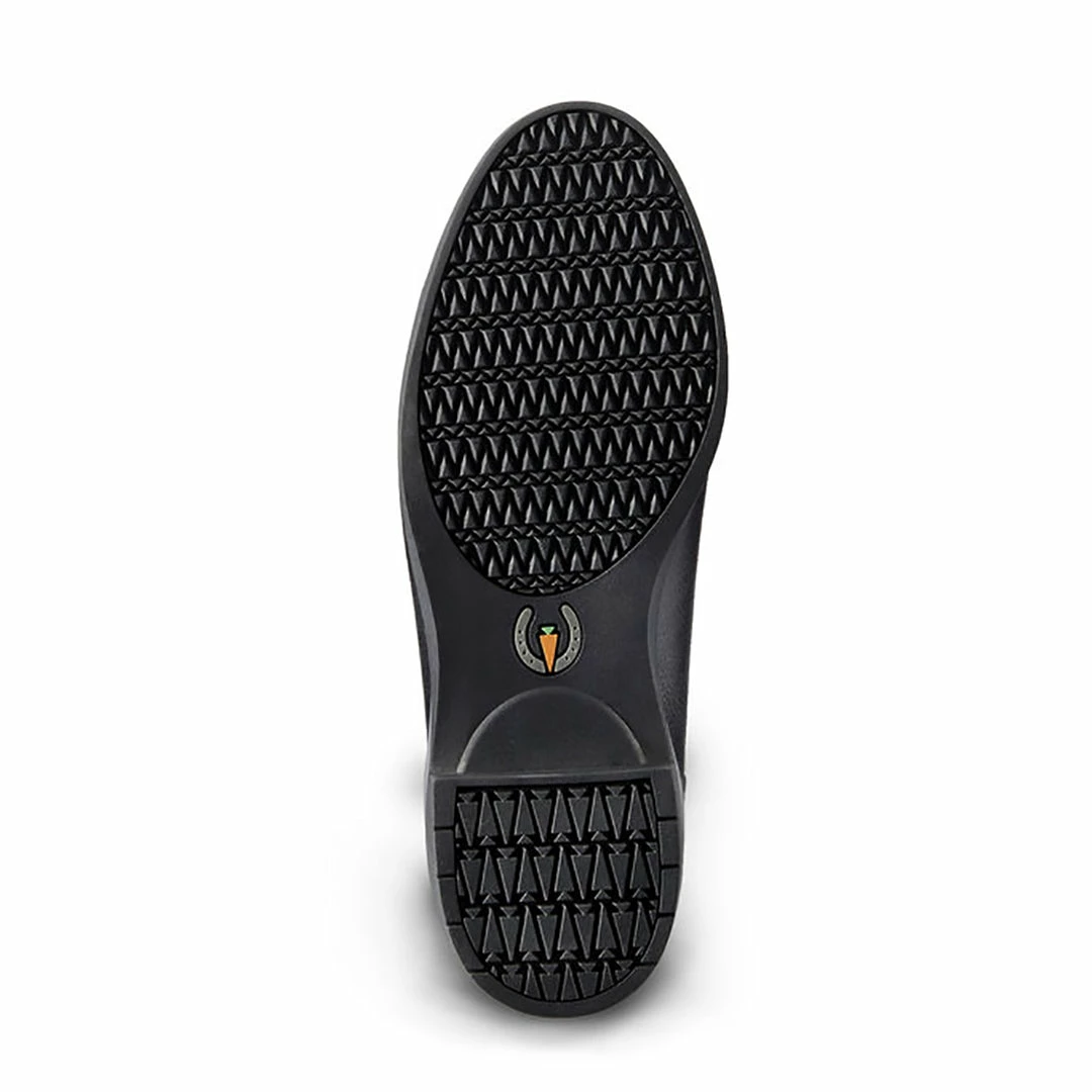 Snow? Ice? Mare that insists on a tromp through both to catch her? No problem. These boots keep feet warm, dry, and happy in the stirrups and on winter rounds all day long. RideWarm&Dry™ technology encapsulates feet for winter performance without the bulk. Seam-sealed waterproof leather uppers and internal waterproof membranes keep moisture out while an insulated lining keeps warmth in. A neoprene tongue backs the front zipper for additional water resistance. Abrasion-resistant, textured full-grain leather adds durability and style. OrangeZone™ outsole gives riders full-traction confidence in the irons and on icy ground.
