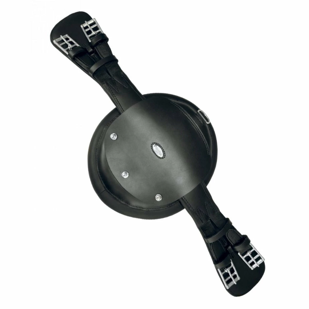 Modified dressage girth featuring our round-shaped panel and elastic ends. This line of girth offers numerous advantages to its users including increased stability during movement and distribution of pressure caused by the girth. The round panel is padded contoured. Three oval inserts inside create an air cushion that distributes and reduces pressure along the horse’s sternum. The girth itself slides through the panel, eliminating all lateral pull on the horse’s muscles during both girthing and riding. This girth is durable even when coming in contact with water or mud.