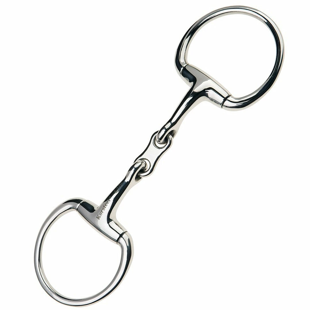 We love the JP Korsteel Stainless Steel French Link Eggbutt Snaffle Bit because unlike a standard jointed snaffle’s nearly straight mouthpiece, JP bits have a curved shape that eliminates the interference that conventional bits can cause. All JP bits feature curved bars that prevent the bit from hitting the roof of the horse’s mouth and eliminate the nutcracker-like action that can pinch a horse’s tongue. Developed in conjunction with the world-renowned trainer and jockey John Patterson, JP bits provide the utmost comfort for your horse. The unique curved shape of the mouthpiece offers many advantages: